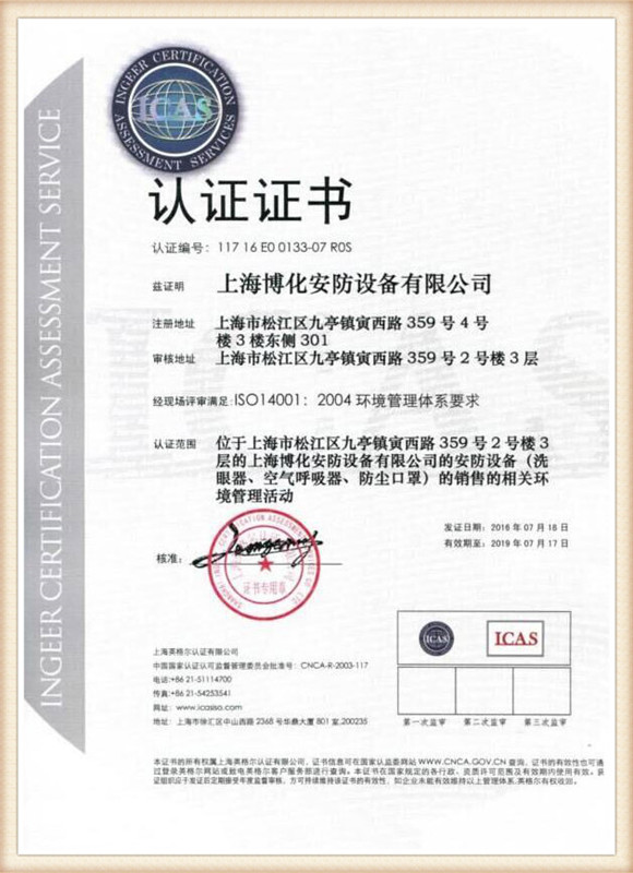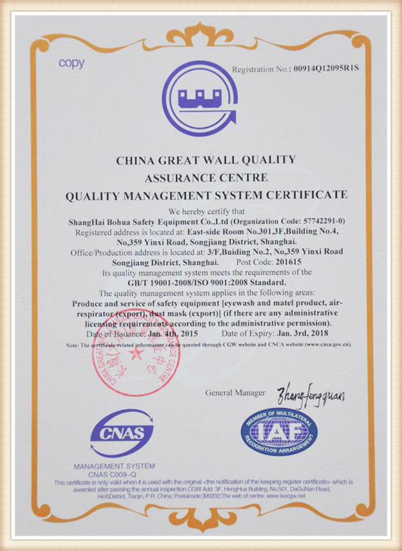 Shanghai Bohua Safety Device Co., Ltd. is located at 4F, Building 13, No. 661 Chenjing Road, Songjiang District, Shanghai, China, near Shanghai Hongqiao transportation hub, the company specializes in R & D, production and sales of eyewash. From 2004 to now, we have developed and produced 11 series and more than 130 types of eyewash. Our sales volume and technology are in the leading position in China. The company has successively passed the ISO 9001:2008 quality system certification, ISO 14001:2004 environmental management system certification, OHSAS 18001:2007 occupational health and safety management system certification, obtained the certificate of China's high-quality brand products, and won the Shanghai credit qualification grade "AAA" enterprise.